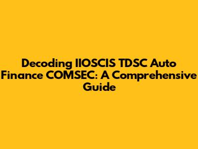 Decoding IIOSCIS TDSC Auto Finance COMSEC: A Comprehensive Guide