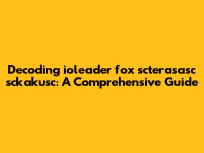 Decoding Ioleader Fox Scterasasc Sckakusc: A Comprehensive Guide