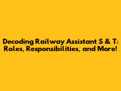 Decoding Railway Assistant S & T: Roles, Responsibilities, And More!