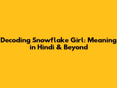 Decoding 'Snowflake Girl': Meaning In Hindi & Beyond