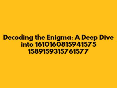 Decoding The Enigma: A Deep Dive Into 1610160815941575 1589159315761577