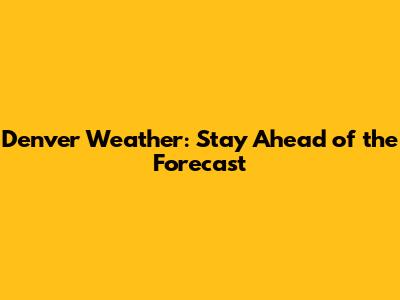 Denver Weather: Stay Ahead Of The Forecast