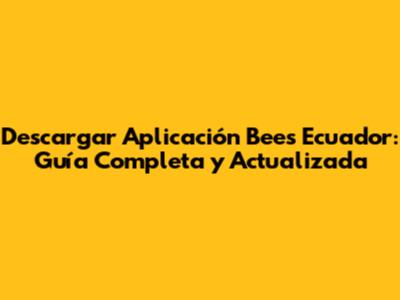 Descarga Bees Ecuador: Guía Completa Y Actualizada
