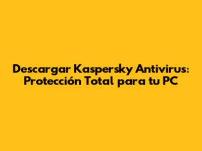 Descargar Kaspersky Antivirus: Protección Total Para Tu PC