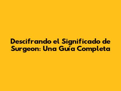 Descifrando El Significado De 'Surgeon': Una Guía Completa