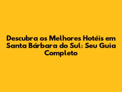 Olá, pessoal! Se você está planejando uma viagem para Santa Bárbara do Sul, no Rio Grande do Sul, e está procurando o lugar perfeito para se hospedar, você veio ao lugar certo. Neste guia completo, vamos explorar os melhores hotéis em Santa Bárbara do Sul, desde opções luxuosas até acomodações mais econômicas, para garantir que sua estadia seja inesquecível. Prepare-se para descobrir dicas valiosas, informações detalhadas e tudo o que você precisa saber para escolher o hotel ideal para você. Vamos nessa!