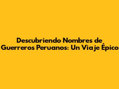 Descubriendo Nombres De Guerreros Peruanos: Un Viaje Épico