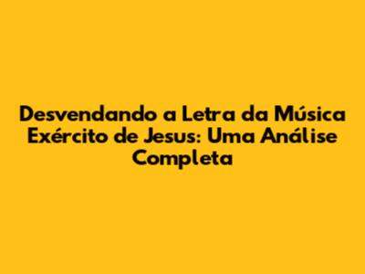 Olá, pessoal! 👋 Se você chegou aqui, provavelmente está procurando a letra da música Exército de Jesus ou quer entender melhor o seu significado. Pois bem, você veio ao lugar certo! Vamos mergulhar fundo na análise dessa canção icônica, explorando suas nuances, interpretações e o impacto que ela tem na vida de muitos. Prepare-se para uma jornada emocionante pelo universo da fé e da música. Vamos juntos!