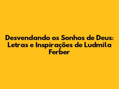 Desvendando Os Sonhos De Deus: Letras E Inspirações De Ludmila Ferber