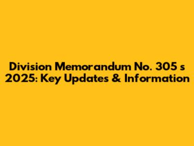 Hey guys! Let's dive into Division Memorandum No. 305 series of 2025. This memo is super important, so let's break it down in a way that's easy to understand. We'll cover everything you need to know, from its purpose to its implications. Whether you're an educator, administrator, or support staff, this guide is designed to keep you in the loop and help you navigate the details like a pro.
