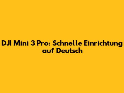 DJI Mini 3 Pro: Schnelle Einrichtung Auf Deutsch