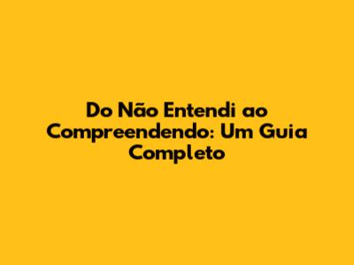Do 'Não Entendi' Ao 'Compreendendo': Um Guia Completo