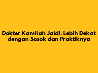 Dokter Kamilah Jaidi adalah nama yang mungkin sudah tidak asing lagi bagi sebagian masyarakat. Sebagai seorang dokter, jejak rekamnya dalam dunia medis menarik untuk ditelusuri. Artikel ini akan mengupas tuntas profil, praktik medis, serta kiprah Dokter Kamilah Jaidi dalam memberikan pelayanan kesehatan. Mari kita gali lebih dalam mengenai perjalanan karir, spesialisasi, serta kontribusi yang telah diberikan oleh Dokter Kamilah Jaidi kepada masyarakat.