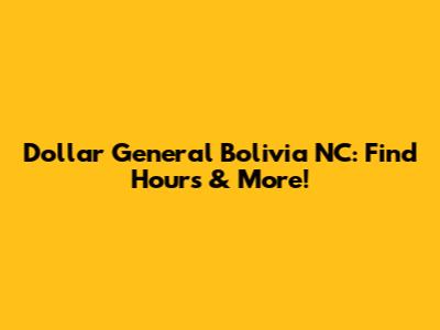 Dollar General Bolivia NC: Find Hours & More!