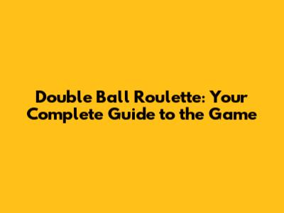What is Double Ball Roulette?
