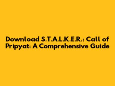 Download S.T.A.L.K.E.R.: Call Of Pripyat: A Comprehensive Guide