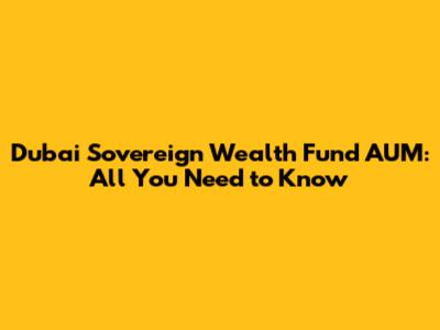 Dubai Sovereign Wealth Fund AUM: Current Estimates