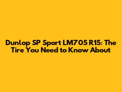 Hey guys! Let's dive into the world of tires, specifically the Dunlop SP Sport LM705 R15. If you're in the market for new tires or just curious about what's out there, you've come to the right place. We're going to break down everything you need to know about this tire, from its key features to its performance on the road. So, buckle up and let's get started!