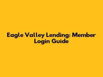 Eagle Valley Lending: Member Login Guide