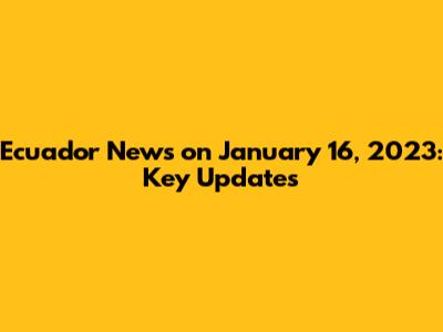 Ecuador News: January 16, 2023 - Breaking Updates