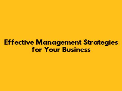 Effective Management Strategies For Your Business