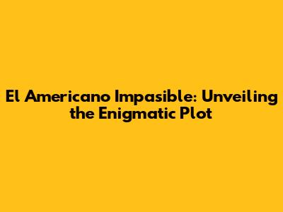 El Americano Impasible: Unveiling The Enigmatic Plot