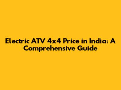 Electric ATV 4x4 Price In India: A Comprehensive Guide