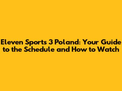 Eleven Sports 3 Poland: Schedule And How To Watch