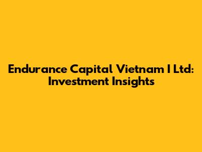 Endurance Capital Vietnam I Ltd: Investment Insights