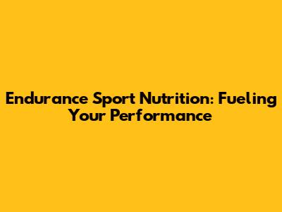 Endurance Sport Nutrition: Fueling Your Performance