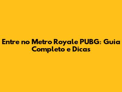 Entre No Metro Royale PUBG: Guia Completo E Dicas