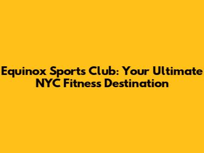 Equinox Sports Club: Your Ultimate NYC Fitness Destination