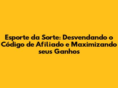Esporte Da Sorte: Como Usar O Código De Afiliado E Ganhar