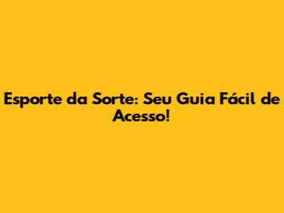 Esporte Da Sorte: Seu Guia Fácil De Acesso!