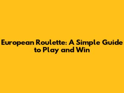 European Roulette: A Simple Guide To Play And Win