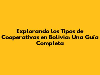 Tipos de Cooperativas en Bolivia: Un Análisis Detallado