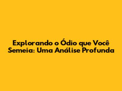 Explorando O Ódio Que Você Semeia: Uma Análise Profunda
