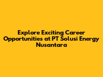 Explore Careers At PT Solusi Energy Nusantara