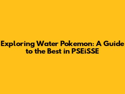 Exploring Water Pokemon: A Guide To The Best In PSEiSSE