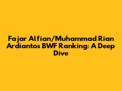 Hey badminton fanatics! Let's dive into the exciting world of badminton and focus on one of the most dynamic pairs in the sport: Fajar Alfian and Muhammad Rian Ardianto, often called Fajar/Rian by their fans. We're going to explore their current standing in the BWF (Badminton World Federation) rankings. This is super important because these rankings directly impact their seeding in tournaments, their chances of winning titles, and their overall journey towards becoming the best in the world. So, what's their latest ranking, and how did they get there? Let's break it down, guys!
