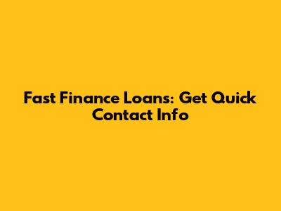 Fast Finance Loans: Get Quick Contact Info