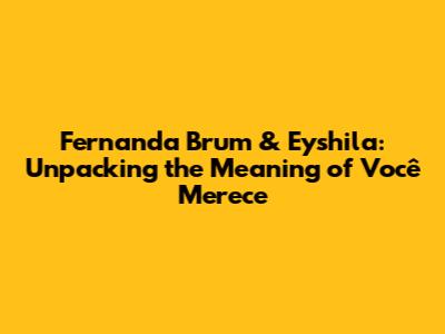 Hey guys! Ever feel like a song just hits you right in the feels? Well, today we're diving deep into one such track: "Você Merece" (You Deserve) by the amazing Fernanda Brum and Eyshila. This song is a powerhouse of emotions, faith, and a whole lotta love. We're going to break down the lyrics, the message, and why it resonates so deeply with so many people. Buckle up, because we're about to go on a musical journey!