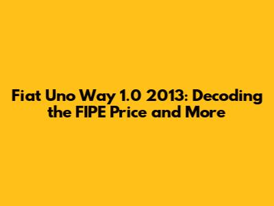 Hey guys! Ever wondered about the Fiat Uno Way 1.0 2013 and its FIPE price? Or maybe you're just curious about this model and what it has to offer? Well, you've come to the right place! We're diving deep into everything you need to know about this popular car. Buckle up, and let's get started!
