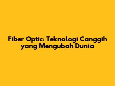 Fiber Optic: Teknologi Canggih Yang Mengubah Dunia