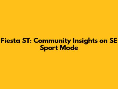Fiesta ST: Community Insights On SE Sport Mode