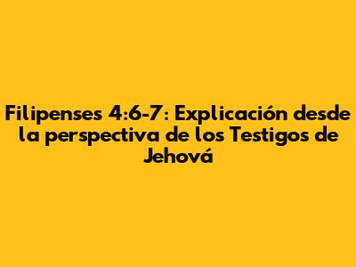 Filipenses 4:6-7: Explicación Desde La Perspectiva De Los Testigos De Jehová