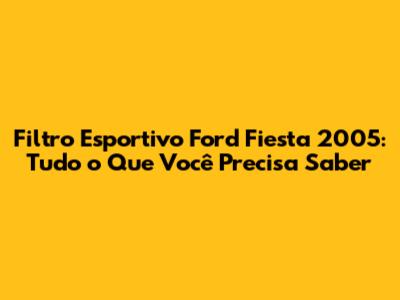 Filtro Esportivo Ford Fiesta 2005: Guia Completo E Dicas Essenciais