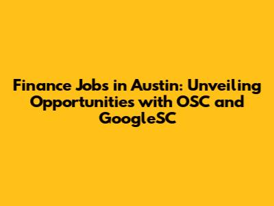 Finance Jobs In Austin: Your Guide To OSC And GoogleSC Opportunities