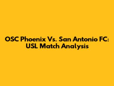 OSC Phoenix Vs. San Antonio FC: USL Match Analysis