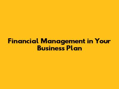 Financial Management In Your Business Plan